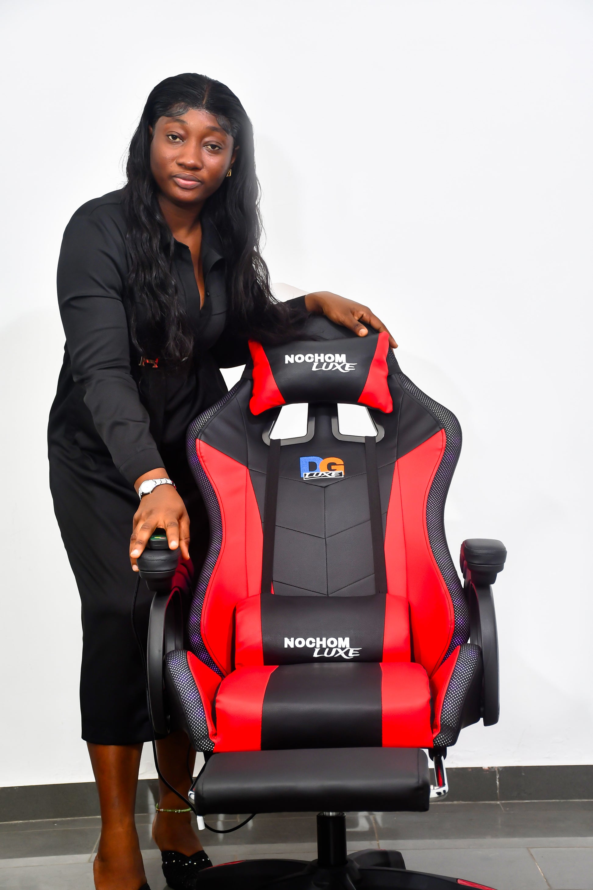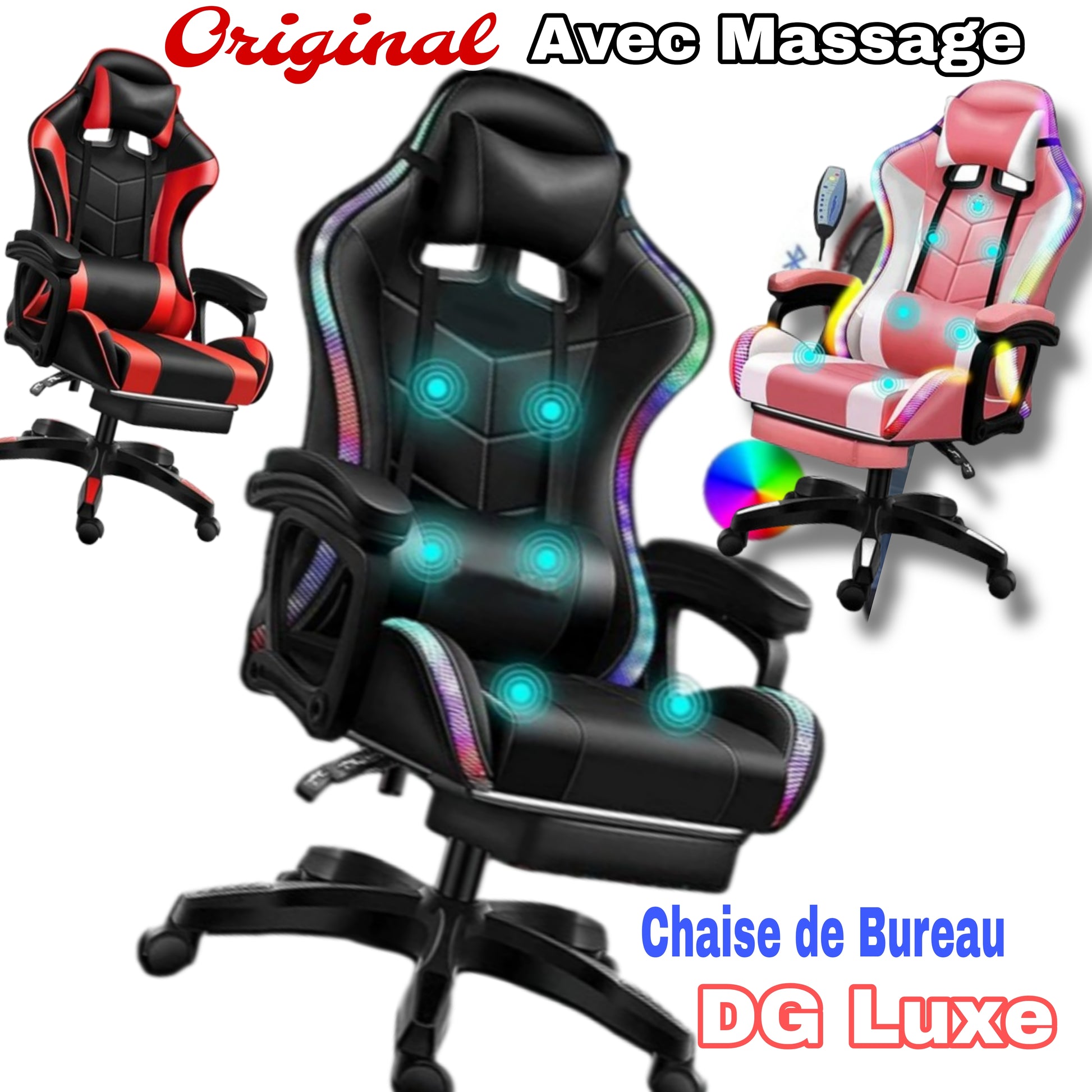 "La chaise DG LUXE est incroyable ! Le massage intégré est parfait pour se détendre après une longue journée de travail. La connectivité Bluetooth me permet d'écouter ma musique préférée tout en travaillant, et les jeux de lumière ajoutent une touche moderne à mon bureau . Un incontournable pour ceux qui veulent allier confort et technologie !" – ** je Vais commander aussi pour mon Chéri