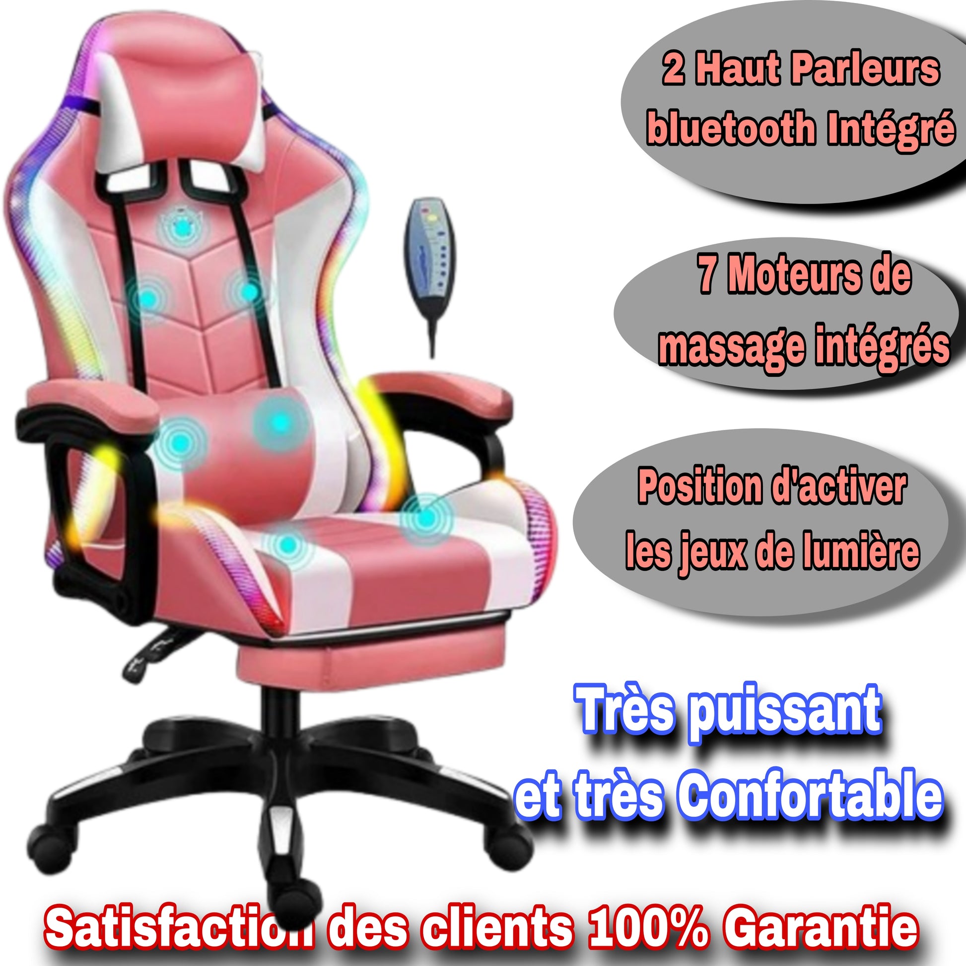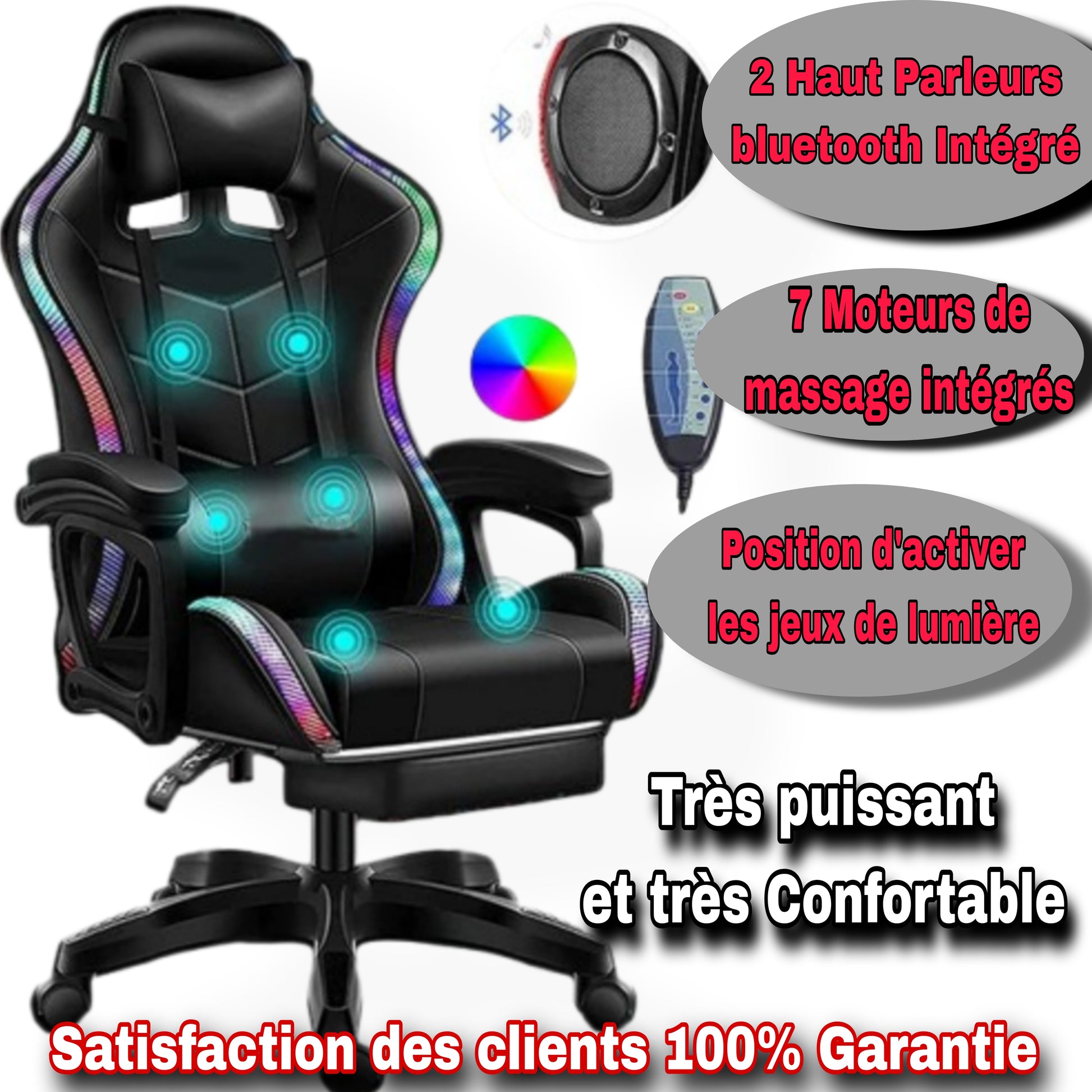 Vous passez des heures au bureau ? Pourquoi ne pas le faire dans un confort absolu ? A vec un effet de massage intégré et des Bluetooth ,jeux de lumières LED réglables